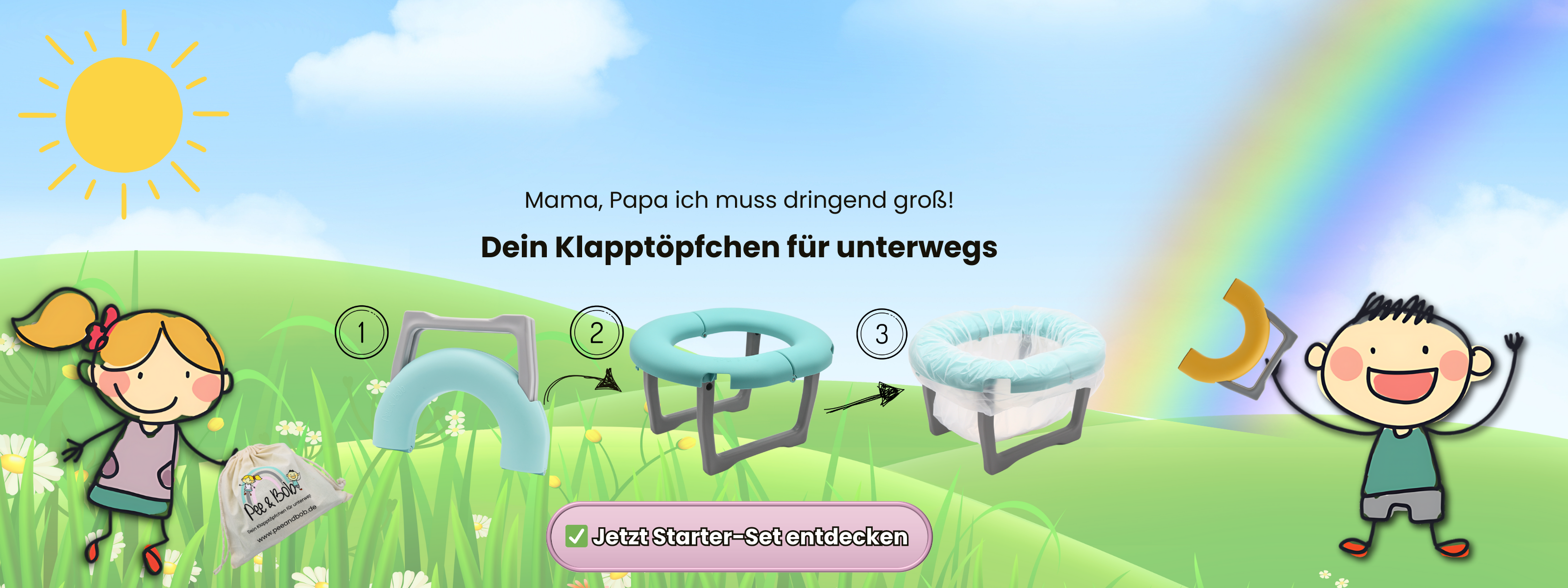 Wenn es schnell gehen muss, Pee & Bob ist im Nu aufgebaut und super einfach in der Nutzung auch für die ganz Kleinen.