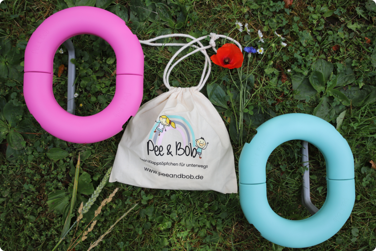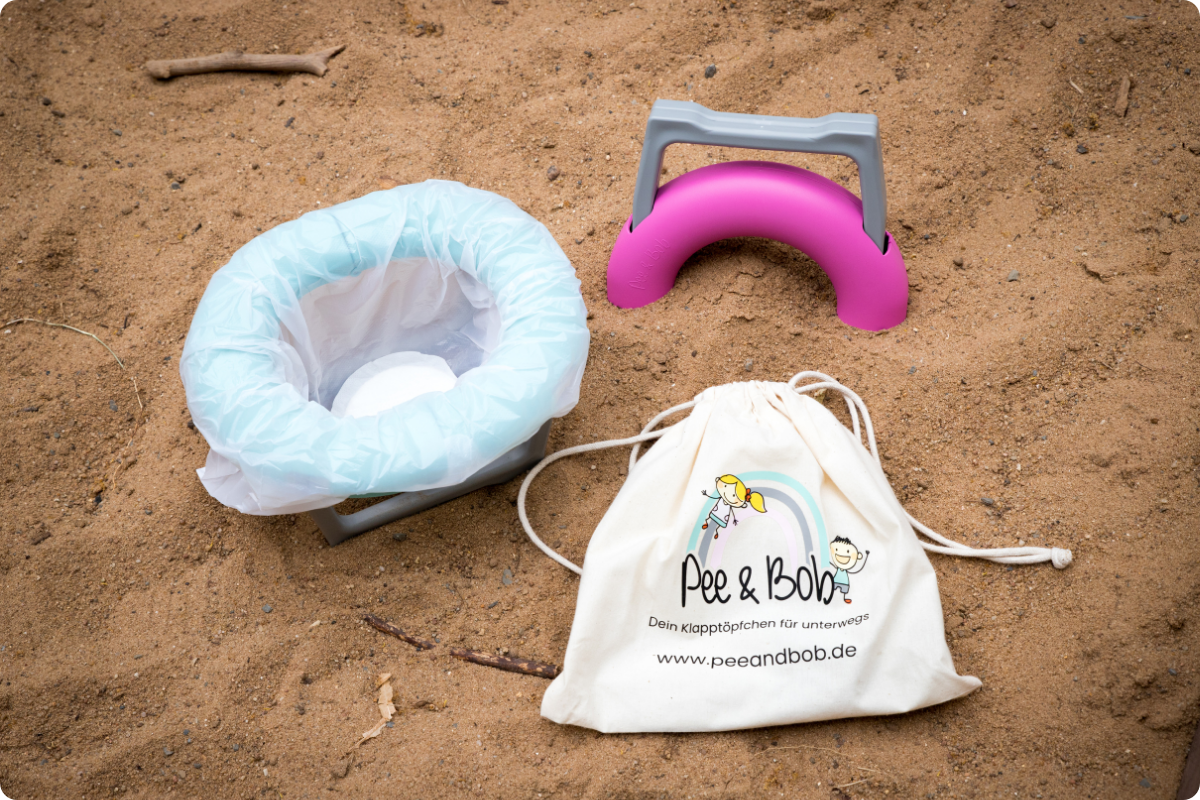 Erlebt jedes Abenteuer ganz entspannt mit Pee & Bob – eurem Klapptöpfchen für unterwegs.